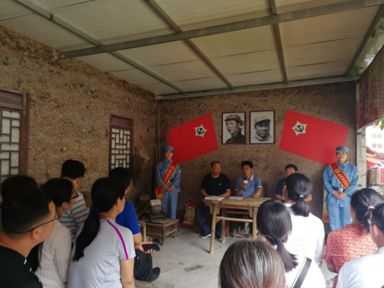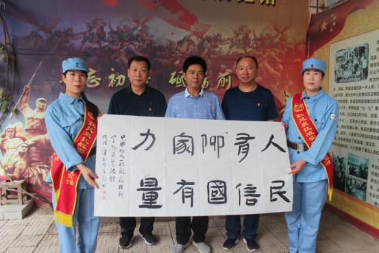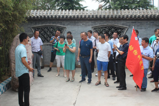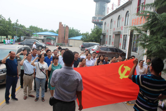 伴随着崇敬与感动,大家又来到郭兴事迹展览馆,在这里再次接受洗礼。认真聆听郭兴同志在抗日战争、解放战争以及建国后各个历史时期的英雄模范事迹,详细了解在整个抗日战争时期,日寇在辉县所犯下的滔天罪行,追忆在中国共产党的领导下,辉县人民面对日本侵略者不屈不挠的斗争历史。在纪念馆前,全体党员面对党旗,重温入党誓词。