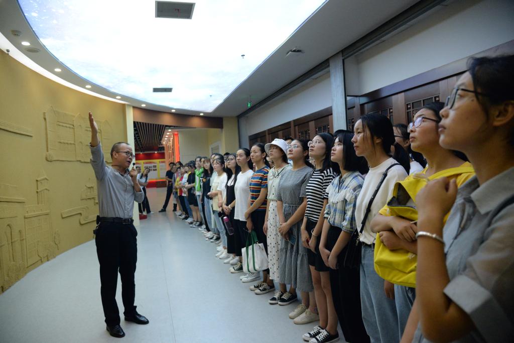 为了让2019级新生更好了解校史校情,领略我校风范和校友风采,感受我校悠久的历史文化,增强学生的荣誉感、自信心和责任感,9月11日,辅导员张帅鹏带领我院2019级新生参观校史馆,图书馆韩延安为新生解说。