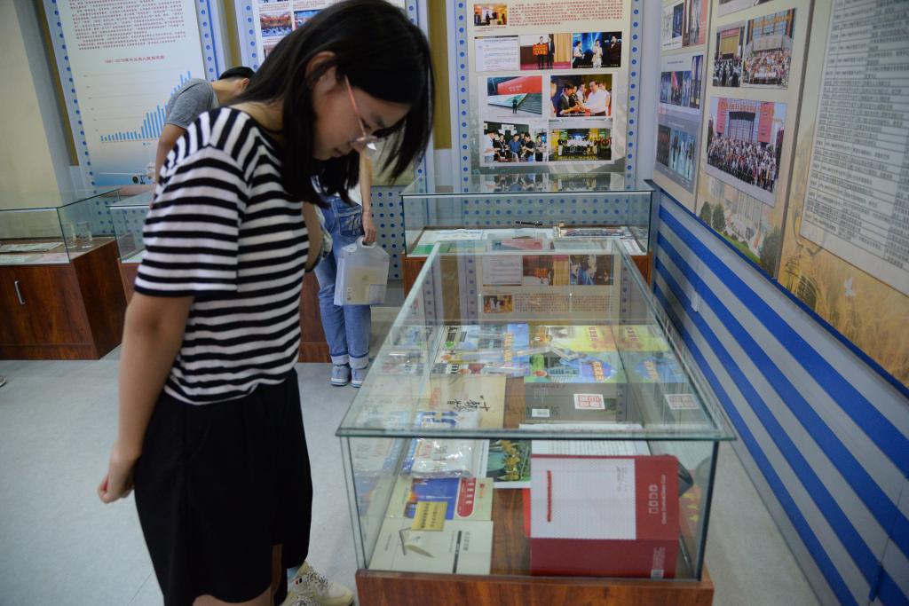 全院新生以班级为单位,在韩延安老师引导下,井然有序地进入校史馆。伴随着韩老师生动细致的讲述,新同学们感受到学校厚重的历史底蕴和绚丽的发展历程。通过校史馆一块块精致的展板、一张张珍贵的照片和一件件实物,同学们仿佛打开了我校漫长历史画卷,细细品味。