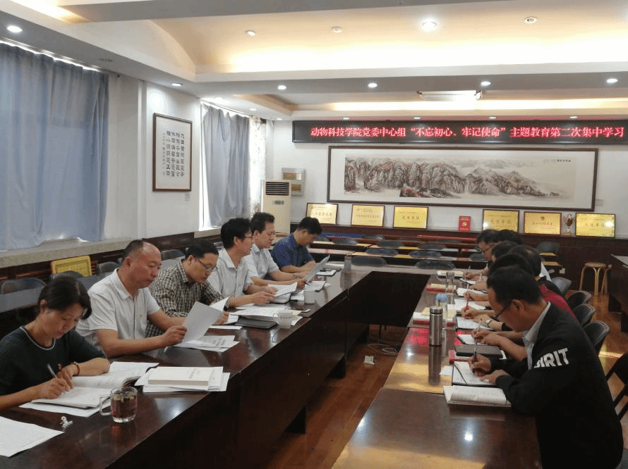 根据学校“不忘初心、牢记使命”主题教育部署安排,9月27日,动物科技学院党委理论学习中心组在实验楼E302会议室召开“不忘初心、牢记使命”主题教育第二次集中学习研讨会。党委书记郭东升、院长马金友、党委副书记陈松玲、副院长陈金山、副院长贺永惠、副院长葛亚明、党委委员张天安、党委委员张书响、各党支部书记参加了此次学习研讨会。