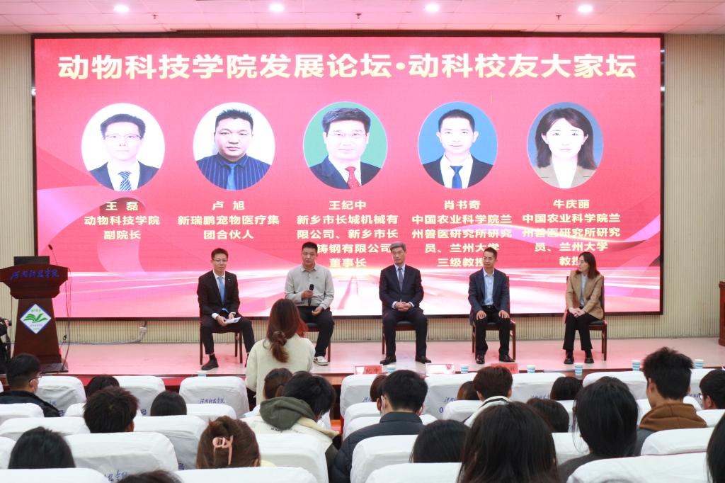11月9日,“动物科技学院发展论坛•动科校友大家坛”在河南科技学院成功举办。本次论坛由河南科技学院动物科技学院主办。新乡市长城机械有限公司、新乡市长城铸钢有限公司董事长王纪中,中国农业科学院兰州兽医研究所研究员、兰州大学教授肖书奇,中国农业科学院兰州兽医研究所研究员、兰州大学教授牛庆丽,河南科技学院临床兽医专业校外讲师、新瑞鹏宠物医疗集团合伙人卢旭作专题报告。论坛由动物科技学院副院长王磊主持。
