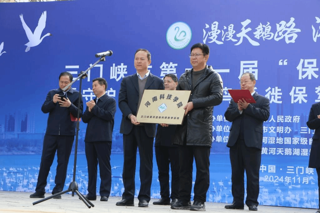 为进一步推动野生动物疫病防控与科研合作,强化科学研究与教育实践的深度融合,河南科技学院动物科技学院党政负责人,于11月22日前往三门峡市,参加了三门峡市第十一届“保护白天鹅宣传日”活动,并进行了“河南科技学院”科研教学基地的授牌仪式。