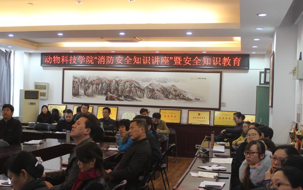 为认真做好学校校园安全消防工作部署,避免重特大伤亡及火灾事故的发生,确保学院消防安全工作稳定,切实提高我院教职工的消防安全意识和安全技能,真正做到查改火灾隐患到位、初期火灾扑救及时、疏散学生安全有序。11月28日,动物科技学院在E302会议室举行“消防安全知识”暨安全知识教育讲座,讲座邀请消防宣传专职教员、消防志愿者杰出青年杜通为大家讲解,我院全体教职工参加。