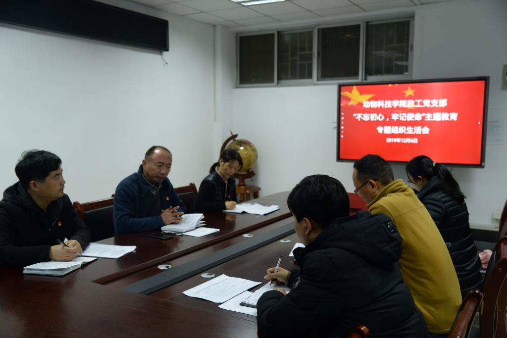 为贯彻落实“不忘初心牢记使命”主题教育活动安排,12月6日,动物科技学院政工党支部召开了“不忘初心、牢记使命”专题组织生活会。