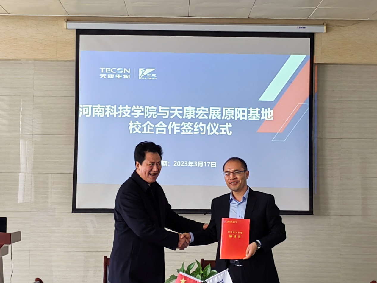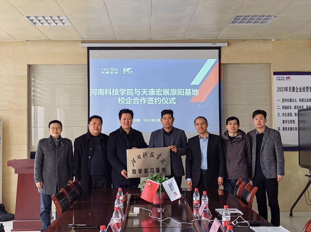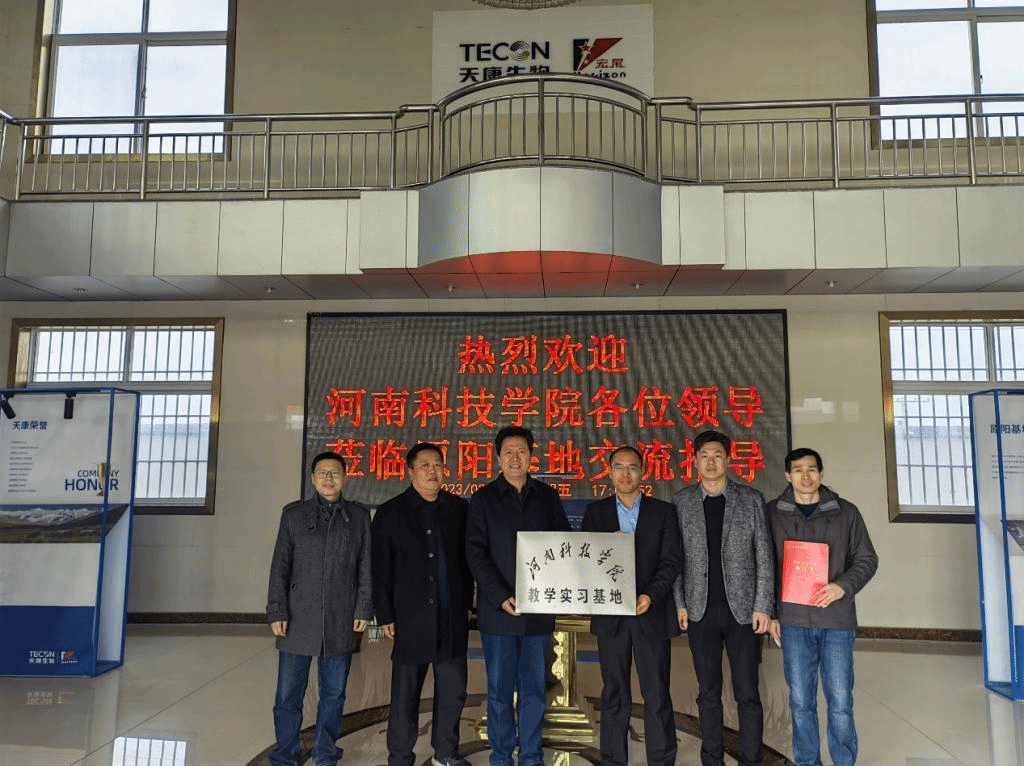3月17日下午,动物科技学院副院长陈金山、动科专业负责人苗志国、临床实验室主任钟华、韩庆功一行赴天康宏展原阳基地,参加了"本科教学实习基地"签约暨揭牌仪式。河南天康宏展实业有限公司人事部经理李军召,天康宏展原阳基地生产部场长王刘敏、经理汪军等参加了本次活动。