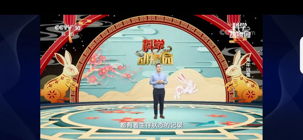 在《兔年说兔》栏目中,胡斌博士主要讲述了我国野生穴兔的分类以及驯化过程,与现场主持人张腾岳进行了面对面的交流,还通过互联网与全国的观众朋友们进行了互动,为中国农历兔年的到来增添了“科学”的祝福。