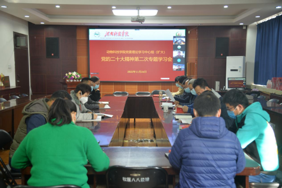 11月24日上午,动物科技学院通过线上线下相结合的方式,召开党委理论学习中心组(扩大)党的二十大精神第二次专题学习会,学院领导班子成员、党委委员、全体党支部书记参加会议。会议由学院党委书记郭东升主持。