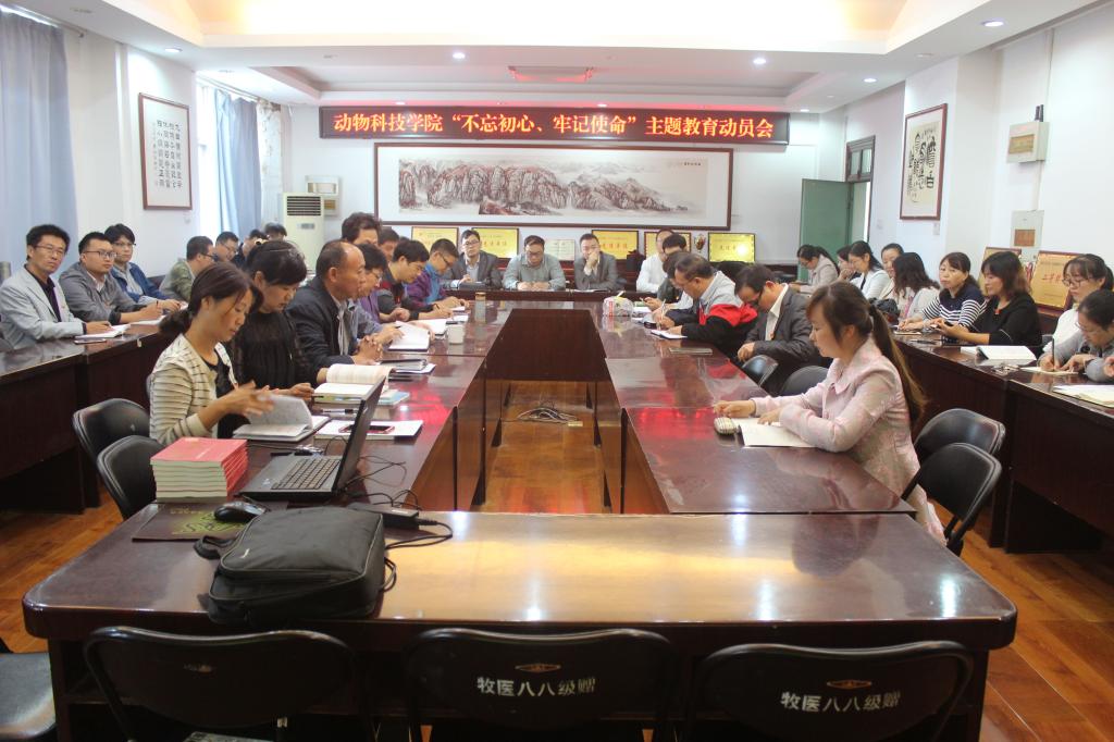 院党委书记郭东升对开展“不忘初心、牢记使命”主题教育进行动员和部署。一是班子成员和全体党员,认真学习周书记和巡回指导组长在动员会上的报告,领会精神内容。二是认认真真开展理论学习活动,注重用党的理论武装头脑,深入学习习近平总书记在“不忘初心、牢记使命”主题教育工作会议、中央政治局第十五次集体学习上的重要讲话精,要在学原著、悟原理,要在要在学懂弄通做实上下功夫。三是精心组织,认真落实,结合学校发展实际、学院发展实际和个人思想及工作实际,对照目标和要求,认真梳理问题,做好整改落实,努力在提高认识,推动工作上见成效。四是按照校党委的部署要求,紧密结合学院实际,准确把握主题教育的根本任务、总要求和具体目标,领导班子成员要要率先垂范,各党支部认真组织,党员密切配合,把开展两学一做常态化制度化、落实三会一课制度、开展主题党日活动与这次主题教育活动紧密结合,把学习教育、调查研究、检视问题、整改落实贯彻全过程,狠抓各项任务落实,努力实现理论学习有收获、思想政治受洗礼、干事创业敢担当、为民服务解难题、清正廉洁做表率的目标。以实际行动和显著的业绩庆祝学校80华诞,向新中国成立70周年献礼。