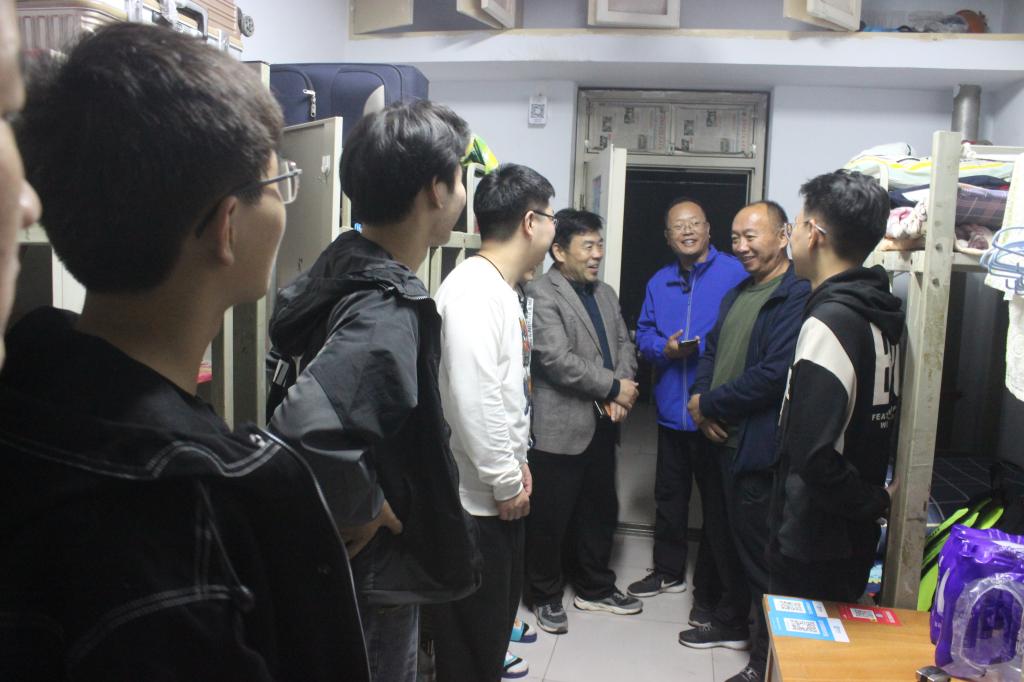 为了解新生到校入住情况,帮助其尽快适应大学生活,进一步加强师生之间交流,表达学院对学生的关怀之情,帮助新生尽快熟悉大学生活,10月8日晚,院党委书记郭东升、副书记杨国友和团委书记张书响以及各年级辅导员老师走进新生宿舍看望新生。