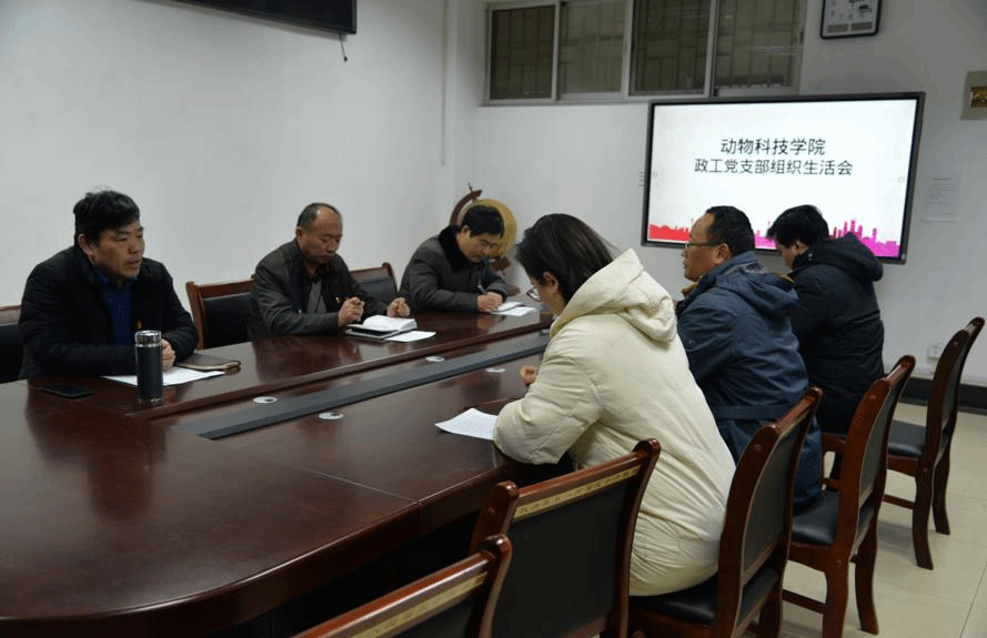 12月30日下午,动物科技学院政工党支部在E407召开支部党员大会,会议共进行三个环节:党支部组织生活会、“双述双评”工作和上党课。支部全体党员参加。