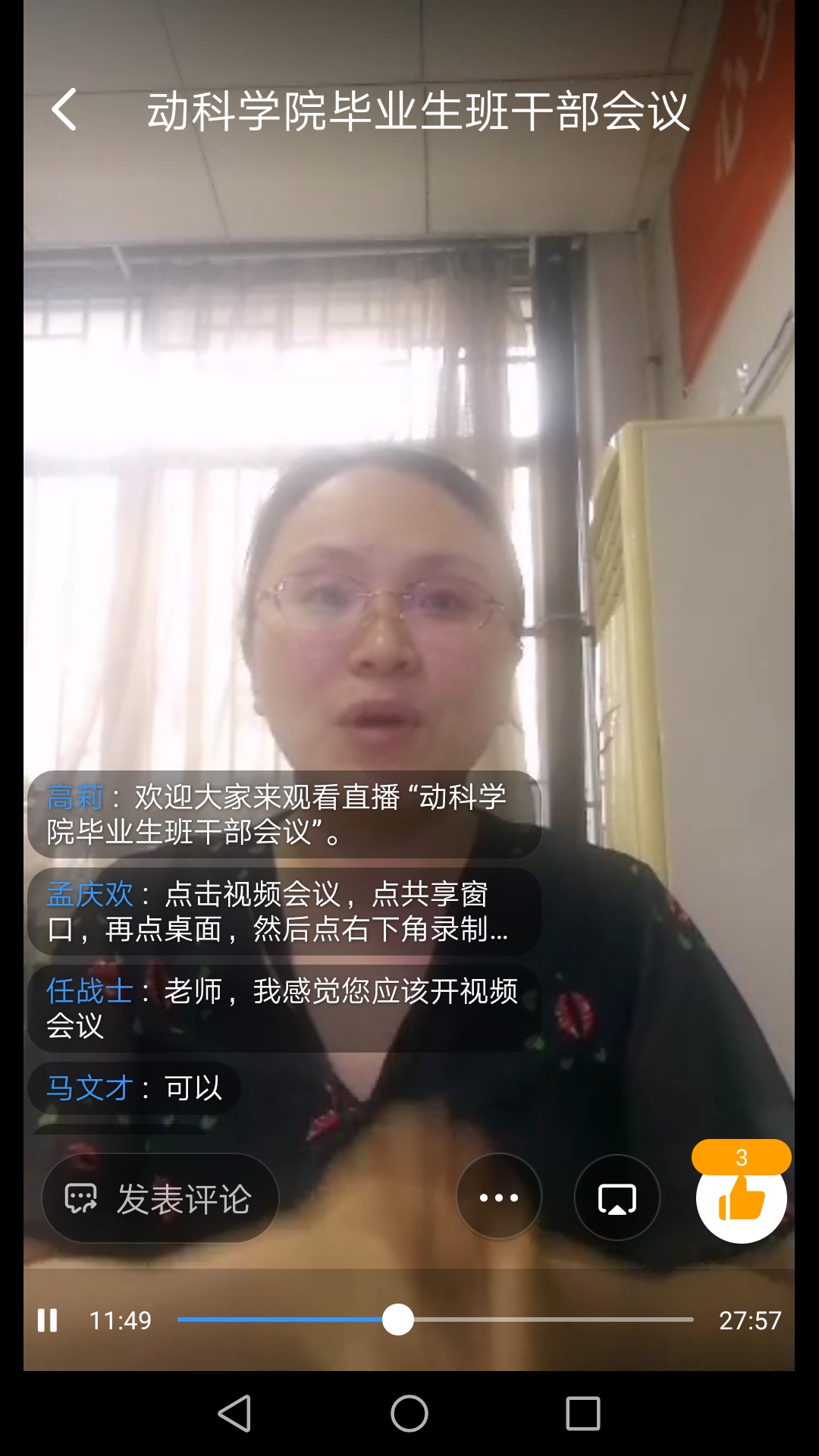5月26日上午,动物科技学院辅导员高莉给2020届毕业班各班干部召开复学返校暨毕业生离校网络工作会议,团委办公室全体老师参加。会议由高莉主持。