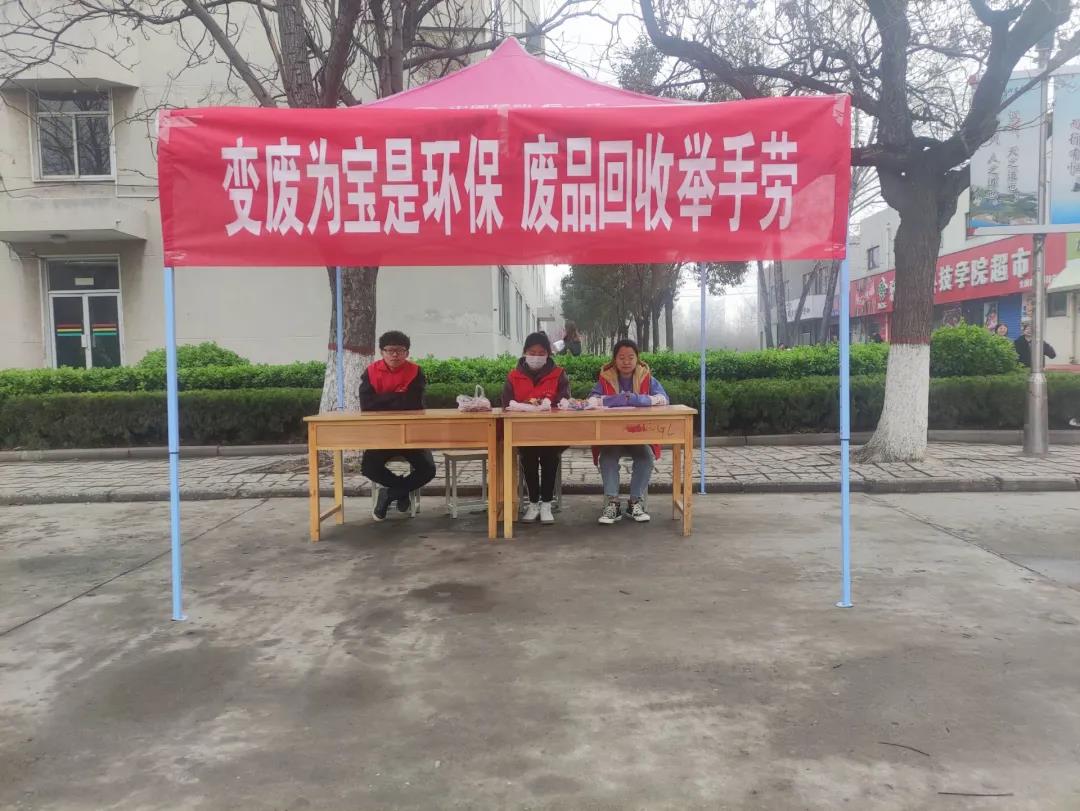 3月20日,动物科技学院青年志愿者协会在校一餐厅门口举行“废品回收,净化校园”的雷锋月系列活动。
