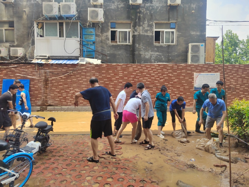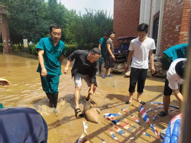 22日,学校党委高度重视,切实把防汛救灾工作摆在学校当前工作的突出位置,副校长曹国杰到动物医院视察灾情,他指出,当前暴雨持续,卫河情势严峻,大家要保持高度警惕,被困人员要积极应对灾情,配合校内抗洪小组的减灾工作。23日上午,动物科技学院党委组织学院党政领导、党员干部师生员工30余人对动物医院大门进行封门防水加固处理,医院全力配合学校防汛工作,将值班室可用的床板、床垫直接拿来,里应外合,快速完成封堵。本以为将是雨过天晴,洪水退去,形势却更为严峻。