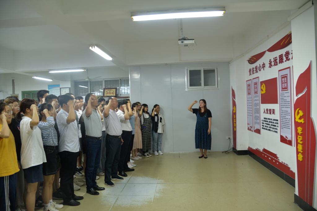 新发展党员代表朱乾磊作表态发言:大家要坚持不断提升自己的思想政治修养,从思想上进一步入党,永远跟党走,为党和人民的事业奉献自己;本着全心全意为人民服务的根本宗旨,努力学习专业文化知识,不断提升专业技能水平和综合服务素质,用实际行动为最广大人民的根本利益贡献力量;认真履行党员义务,积极完成党交给自己的各项工作任务。