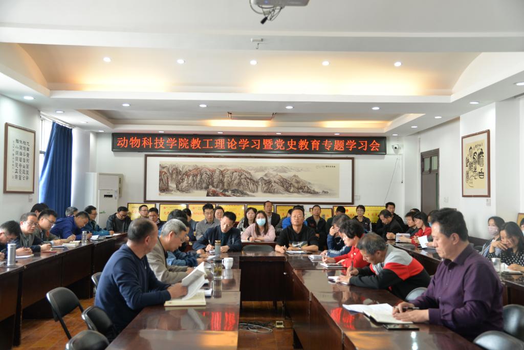 为扎实推进我院党史学习教育,根据上级要求和《河南科技学院党史学习教育工作方案》部署安排,4月29日,动物科技学院召开教职工理论学习暨党史学习教育专题学习会,学院党政领导、全体教职工参加。会议由院党委书记郭东升主持。