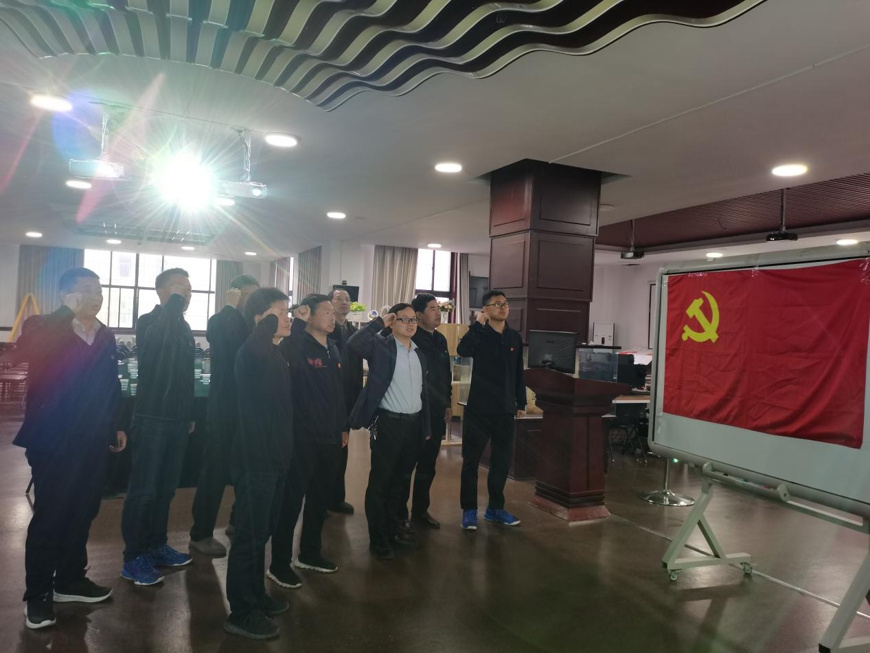 最后,全体党员同志在党旗面前,举起右手,面对党旗,由支部书记李月涛领誓,重温入党誓词。