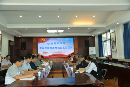 9月24日上午,动物科技学院党委在实验楼E302会议室召开巡察整改专题民主生活会。第一巡察组组长何雅璞,第一巡察组副组长张玉新,巡察工作办公室主任熊仁杰,纪委监察专员办公室综合室副主任王琳到会指导。会议由学院党委书记郭东升主持。