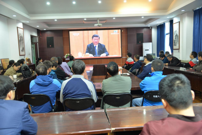 10月9日上午10时,纪念辛亥革命110周年大会在人民大会堂隆重举行,动物科技学院党委组织学院教职工在E302会议室集中观看大会现场直播。