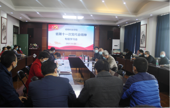 11月4日下午,动物科技学院在E302会议室召开省第十一次党代会精神专题学习会,学院党政领导、全体教职工参加会议,会议由党委书记郭东升主持。