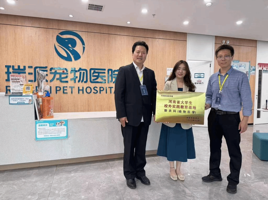 4月17日,我院与瑞派宠物医院共同举行了“河南省新农科(动物医学)大学生校外实践基地”挂牌仪式。学院副院长王磊、陈金山教授、瑞派宠物医院相关负责人出席了此次活动。