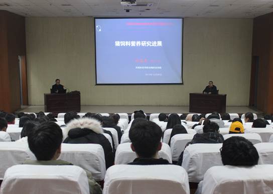 12月9日上午,我校特聘教授刘长忠博士在新图书馆一楼报告厅为我院师生作了“猪饲料营养研究进展”的专题报告,我院师生150余人聆听了报告,本次报告会由动物科技学院副院长葛亚明主持。
