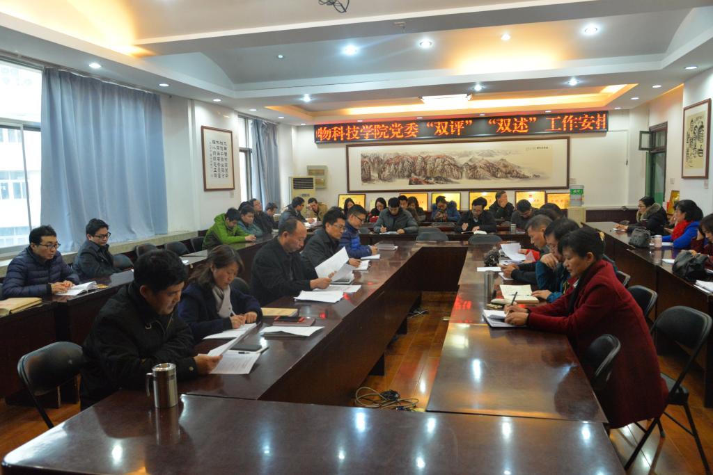 按照校党委组织部《关于开展2018年度“民主评议党支部班子、民主评议党员”工作的通知》、《关于做好2018年度党支部书记抓党建工作述职评议考核的通知》和《关于做好2018年度基层党委、党总支书记抓党建工作述职评议考核的通知》要求,2018年12月20日下午,动物科技学院党委召开“双评”、“双述”工作安排部署会。会议由动物科技学院党委书记郭东升主持,全体党员参加会议。