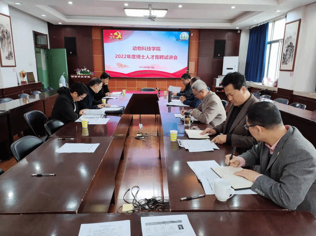 4月15日上午,动物科技学院在学院E302会议室召开2022年高层次人才远程招聘会议,学院领导班子成员和教研室主任参加会议,会议由院长马金友主持。