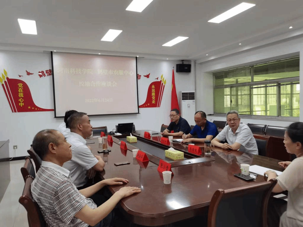 6月24日上午,动物科技学院党委书记郭东升、院长马金友、副院长葛亚明一行前往鹤壁市农业农村发展服务中心参加研究生培养基地揭牌仪式,看望我院在鹤校友及挂职博士,并就产学研合作进行洽谈交流。
