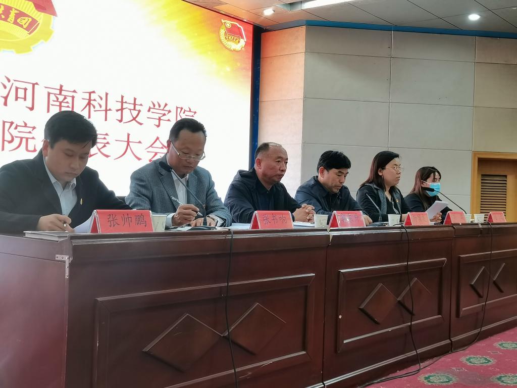 4月20日晚,共青团河南科技学院2021年动物科技学院团员代表大会在图教201召开。动物科技学院党委书记郭东升、副书记杨国友;团委书记张书响,副书记刘璐、张帅鹏;辅导员赵迁和团员代表125人参加了会议。会议由党委副书记杨国友主持。