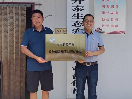 郭东升一行在周口开泰良种羊繁育基地进行实地考察,针对该羊场存在的产羔率低的难题及羊场后续的转型升级提出了具体可行的改进建议,并同技术人员互相留了联系方式,结成帮扶对子。葛亚明与基地负责人为我校良种精准繁育科研试验站揭牌,该试验站的建立,为改善商水县羊繁殖力低的现状,解决羊业种源“卡脖子”技术难题,打赢“种业翻身仗”奠定重要基础。