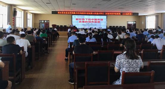 7日下午,王永强为商水县农业农村局工作人员200余人进行了新形势下中国养猪及猪的饲养管理的专题讲座。王永强以甲骨文“家”引入,深入浅出讲述了养猪业的重要性和我国养猪业存在的问题及解决方案。通过此次报告,使得商水县农业农村局工作人员在今后工作中更加注重新技术的学习与应用,跳出固有的思维圈,加强能力作风建设,在学干结合中练就过硬本领。