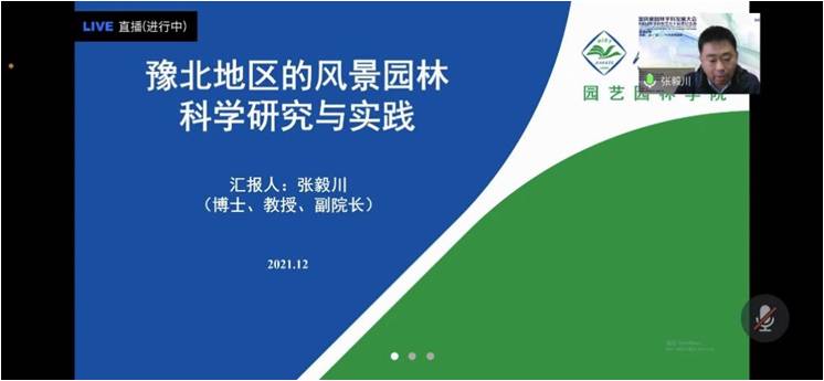 依据疫情防控要求,此次会议采取线上报告的形式。会上,张毅川教授以“豫北地区的风景园林科学研究与实践”为题作专题报告,系统总结了我校风景园林学科的研究成果和研究特色,引起了参会者的广泛关注。中南林业科技大学文亚峰教授作为本次会议的主持人,对本场报告给与了高度评价。