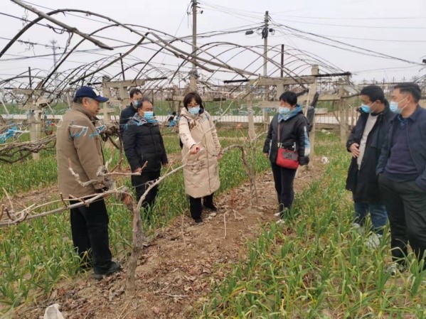 上午,帮扶队员来到练集镇朱集村,听取支部书记对该村脱贫工作和后期乡村振兴工作的汇报后,实地考察了种植大户的冬小麦生长状况,对冬小麦返青的肥水管理和病虫害防治给出了意见建议。陈碧华教授开展了大葱育苗和种植技术现场培训,重点介绍了具有技术成熟、无风险、收益高等优点的大葱与马铃薯轮作技术。周瑞金副教授为果农讲解了葡萄修剪、早春病虫害防治、桃树大树移栽后管理技术等内容。在阳博绿色生态园周瑞金副教授查看了草莓生长情况后,就草莓成熟期温湿度控制、病害防控做了指导,并提出延长草莓产业链、增加收益的建议。