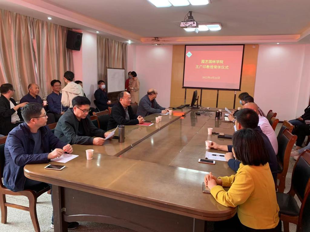 4月22日下午,园艺园林学院在实验楼B316会议室举办王广印教授荣休仪式。全体班子成员、蔬菜学教研室全体教师、教研室主任、支部书记、教授、办公室主任、教学秘书参与仪式,仪式由学院党委副书记朱黎娅主持。