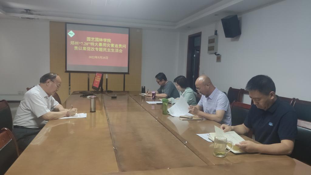 5月25日下午,园艺园林学院在实验楼B段316会议室召开郑州“7·20”特大暴雨灾害追责问责以案促改专题民主生活会,领导班子成员参加会议。会议由院党委书记郜庆炉主持。