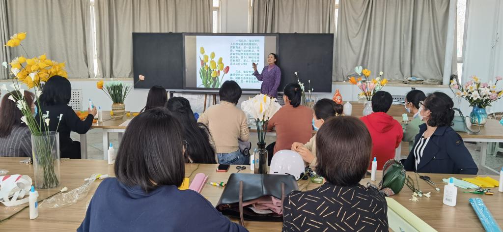 为迎接第113个国际妇女节,丰富广大女工的精神文化生活,按照校工会相关文件精神, 3月7日下午,园艺园林学院组织全院女工在实验楼A101画室开展“阳春三月庆女神,三八手作郁金香”纸艺花制作活动。