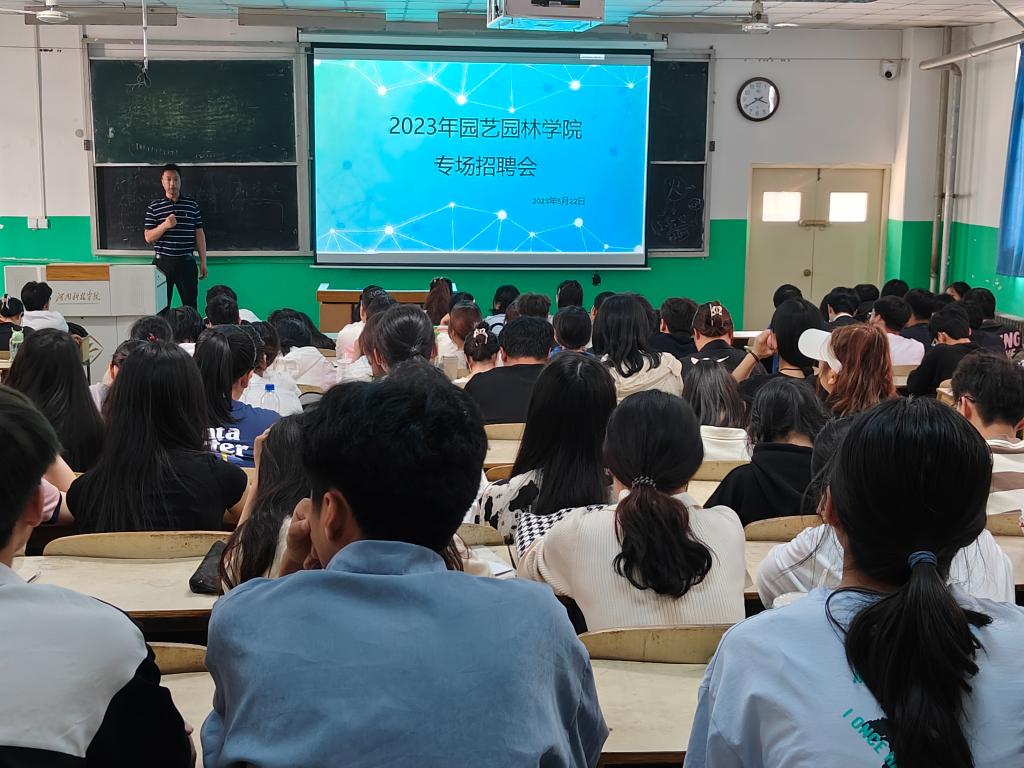 为进一步推进2023届毕业生就业工作,打通就业服务“最后一公里”,5月22日下午,园艺园林学院在二合一教室举办了毕业生专场招聘双选会。郑州海之源生物科技有限公司等5家企业参会,学院领导班子到现场指导并与参会企业进行了深入交流。