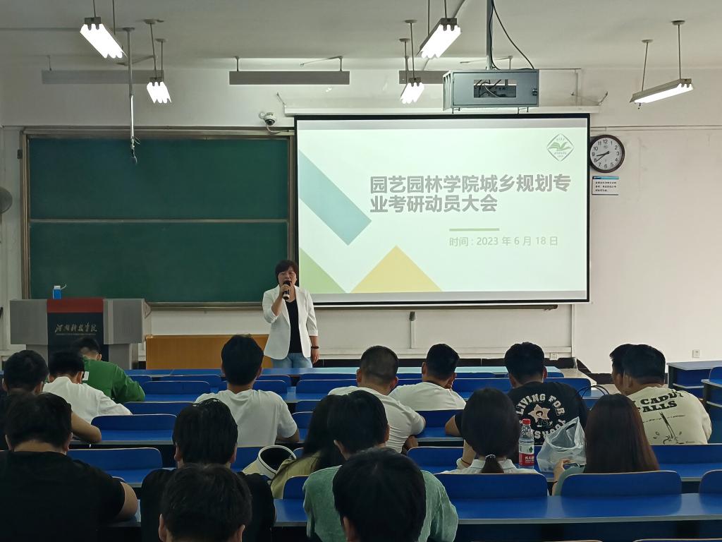 为充分调动同学们的考研积极性,使同学们能够更好了解和掌握考研趋势、积极备考。6月18日,园艺园林学院同时于零号教学楼合四教室、8号教学楼合二和8号教学楼合三教室开展风景园林、园林、园艺和城规专业考研经验交流暨动员大会。此次大会邀请了城乡规划学主任宋利利、风景园林学主任毛达、园艺系主任李贞霞及蔬菜学副主任李庆飞,优秀毕业生代表及2020级全体学生参加了会议。