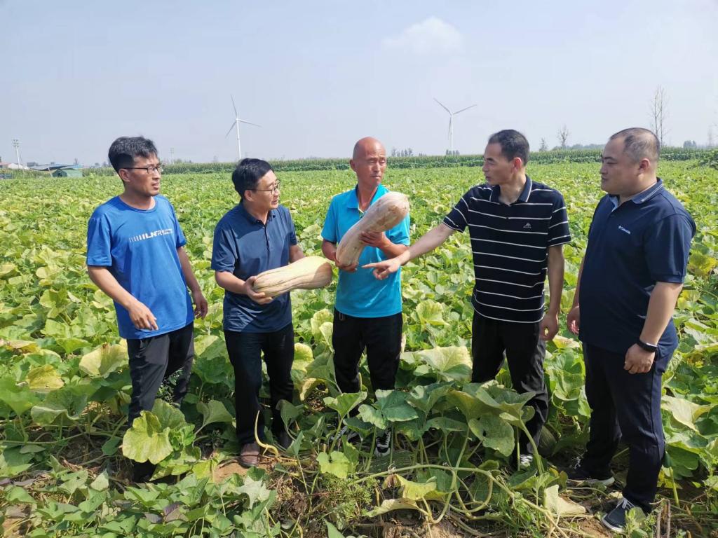 为进一步推进学习贯彻习近平新时代中国特色社会主义思想主题教育走深走实,8月10日,园艺园林学院赴封丘县闫庄村调研、指导南瓜生产,学院党委书记郭超杰、副书记王占魁、党政办主任王保全及蔬菜专家李新峥教授一行4人参加了调研和指导活动。