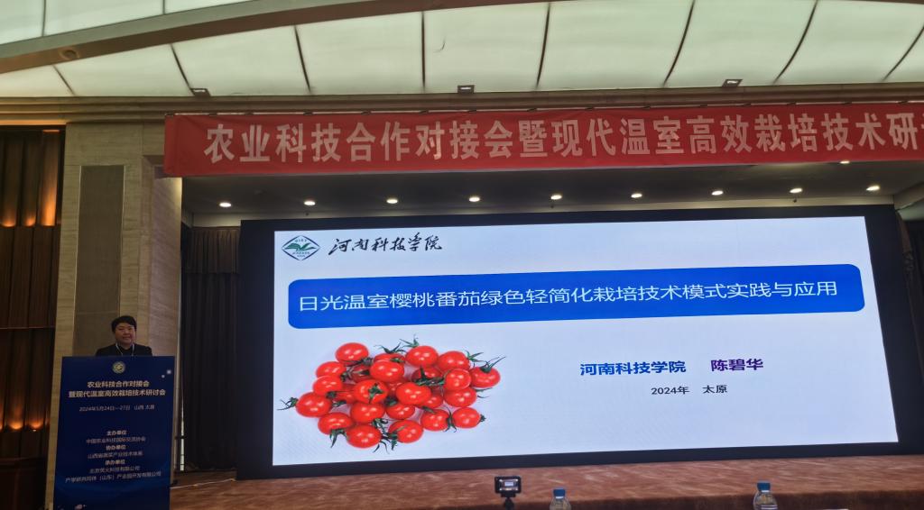 5月24日-27日,由中国农业科技国际交流协会主办、山西省蔬菜产业技术体系协办、产学研共同体(山东)产业园开发有限公司承办的“农业科技合作对接暨现代温室高效栽培技术研讨会”在山西省太原市召开。来自全国科研院所、农业院校、企业的190余位设施农业相关专家、学者、代表参加了本次大会。中国农业科学院蔬菜花卉研究所杜永臣研究员、尚庆茂研究员和中国农业大学园艺学院高丽红教授等国家大宗蔬菜产业技术体系岗位科学家出席会议并做大会报告。我校园艺园林学院教师、河南省大宗蔬菜产业技术体系设施栽培岗位专家团队成员陈碧华教授、王广印教授、吴春珲博士参加会议,并为我国设施农业的发展建言献策。