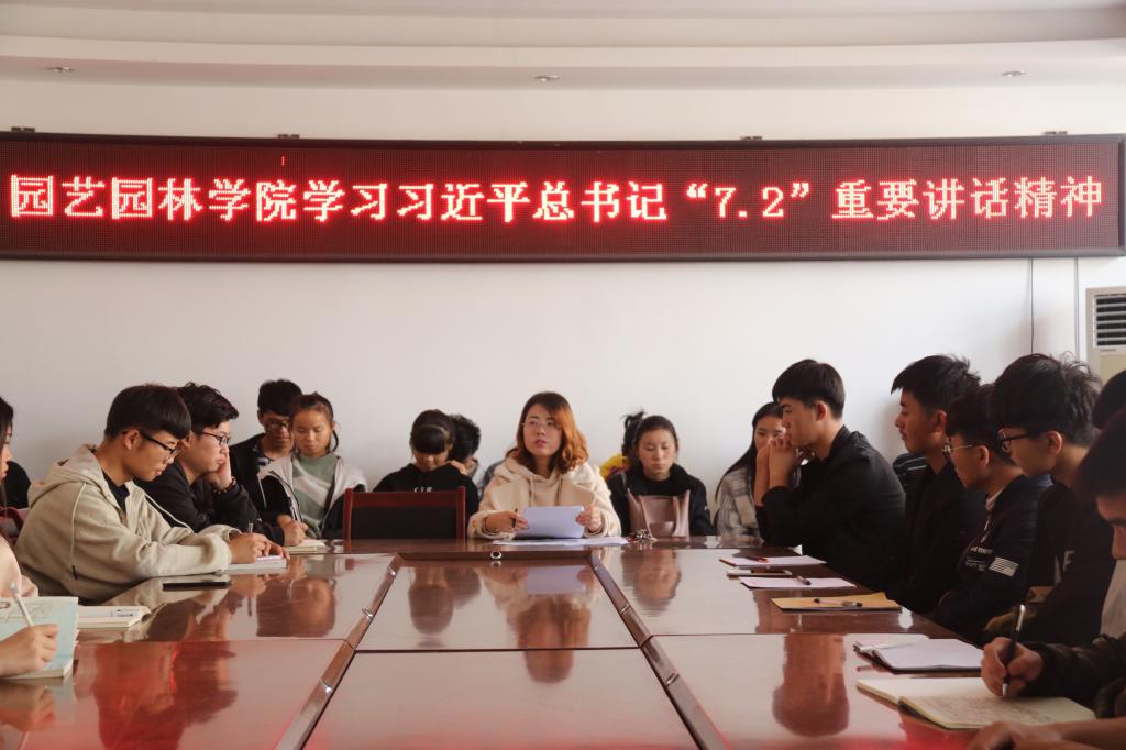 为深入学习习近平总书记"7.2"重要讲话和团十八大精神,进一步加强大学生思想政治教育,11月1日,园艺园林学院学院于实验楼B段312会议室组织召开“学习习近平总书记‘7.2’重要讲话和团十八大精神”专题讲座,学院18级学生100余人参加了此次会议,会议由辅导员赵艳芳老师主持。