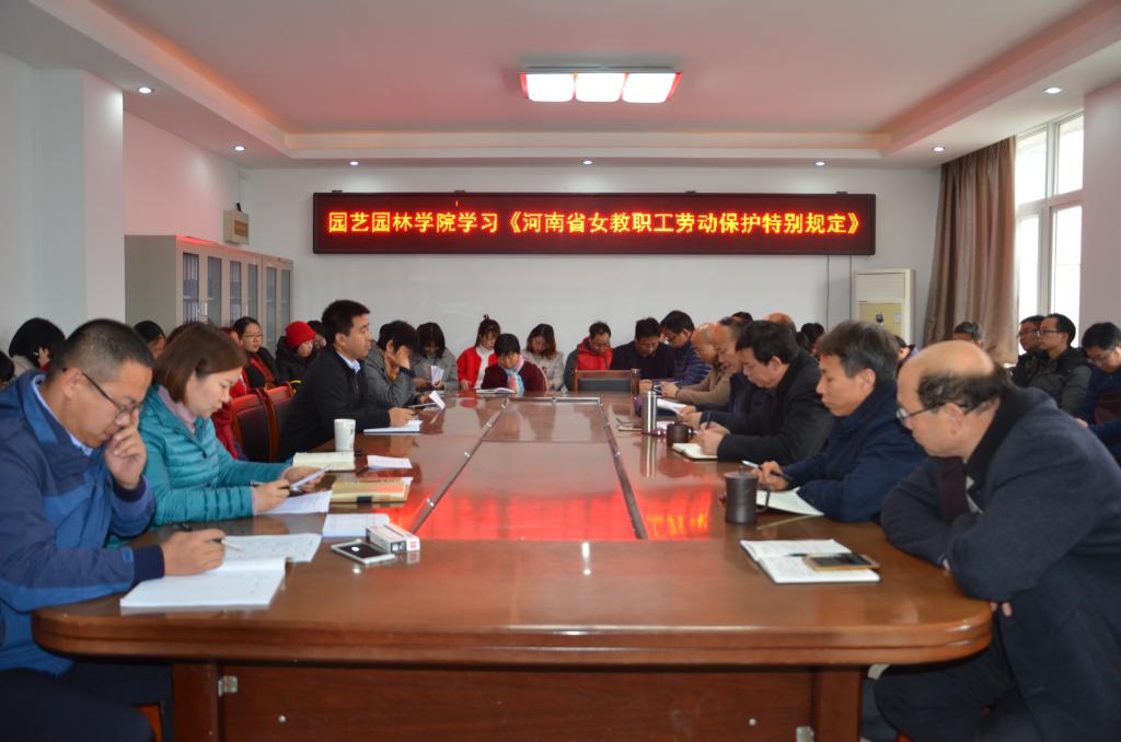 11月15日下午,园艺园林学院组织全体女教职工学习《河南省女职工劳动保护特别规定》。会议由党委副书记朱黎娅主持,学院女教工参加了此次学习活动。