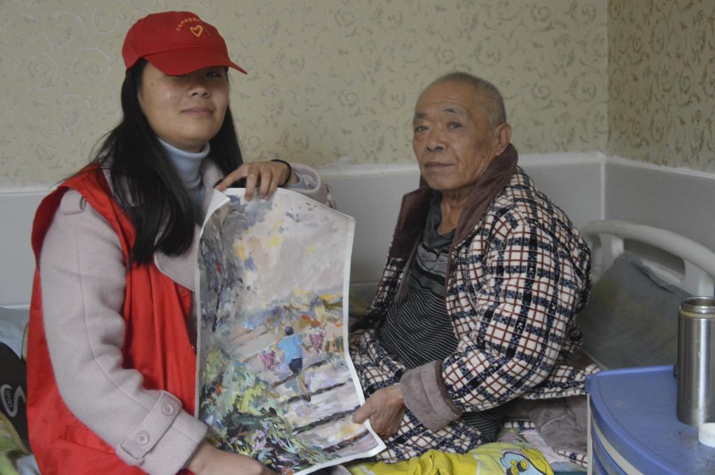 车刚抵达,学院志愿者们就受到了养老院领导以及老人们的热烈欢迎。经过简单沟通后,志愿服务活动开始了。首先志愿者们为老人们奉上了由他们精心准备的相声、小品以及舞蹈等节目,现场观看的老人们欢声笑语,掌声不断。然后,志愿者们分组来各位老人身旁,把带来的简单但饱含心意的油画和慰问品一一展示以及分发给老人们,并与他们亲切而又热情的交谈,随手帮助他们进行一些日常的生活起居。就这样志愿者和老人们在轻松、欢快、温馨、感动的气氛中结束了此次活动。