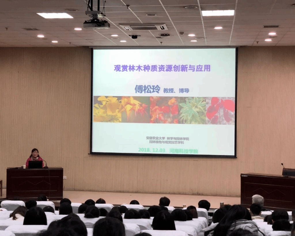 12月3日下午3:30,园艺园林学院邀请安徽农业大学教授、博士生导师傅松玲来院进行学术交流,在新图书馆一楼报告厅做了题为“观赏林木种质资源创新与利用”的学术报告。园林相关专业师生约300人参加了报告会,报告会由科研副院长张毅川主持。