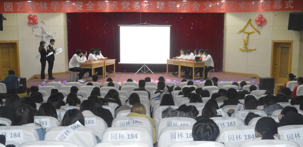 12月7日晚7点,园艺园林学院在图教201举行了安全知识竞赛暨宿舍文化艺术月闭幕式。学院团委辅导员张立、学生干部及18级同学参加了此次活动。