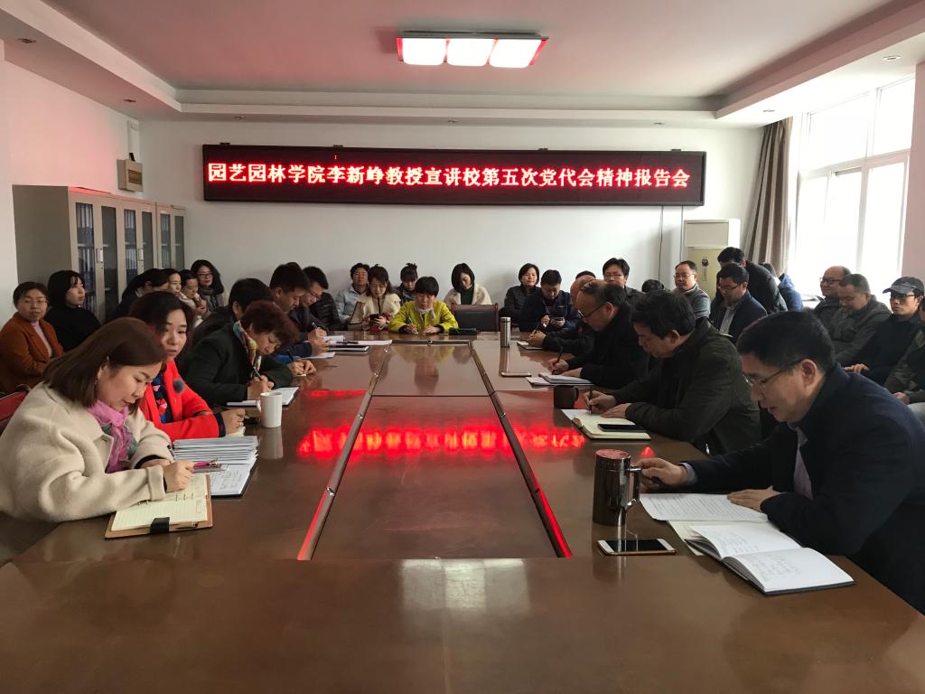 3月21日下午,园艺园林学院于实验楼B316会议室举行了校第五次党代会精神宣讲报告会。本次报告会宣讲人是校第五次党代会代表、园艺园林学院李新峥教授,学院党政领导以及全体教师70余人参加了此次报告会。会议由学院党委书记郜庆炉主持。