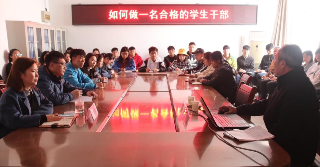 座谈会上,宋建伟老师从学生干部应具备的基本素质、要求和如何增强责任意识、提高自身素质两个方面展开讲解,告诉同学们作为学生干部要必须具备过硬的政治思想素质,必须有扎实的工作作风,必须做遵守纪律的模范,必须清正廉洁、公道正派、无私奉献,必须做带头学习的模范。同时要增强政治意识、责任意识、服务意识和大局意识,要具备敢为人先、勇于担当、舍己为人、无私奉献、开拓进取工作态度和工作作风,时刻做到忠诚履职、尽心尽责、敢于担责、敢于问责,这样才称得上一名合格的学生干部。宋老师结合自己多年的从教和管理经验,通过图文并茂、案例分析的形式,为同学们上了一堂活泼而生动的党课,同学们感同身受,掌声不断。