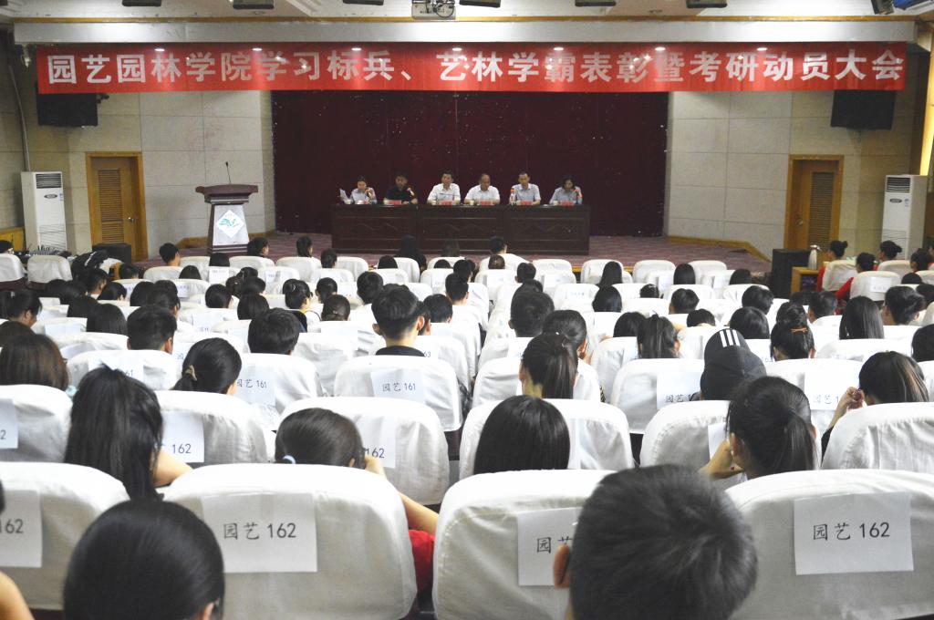 5月27日下午,园艺园林学院在图教201举办了学习标兵、艺林学霸表彰暨考研动员大会,党委学工部副部长、学生处副处长郭超杰、园艺园林学院党委书记郜庆炉、院长周俊国、党委副书记朱黎娅、副院长郑树景、张毅川以及辅导员和学生代表300余人参加了会议,此次会议由朱黎娅主持。