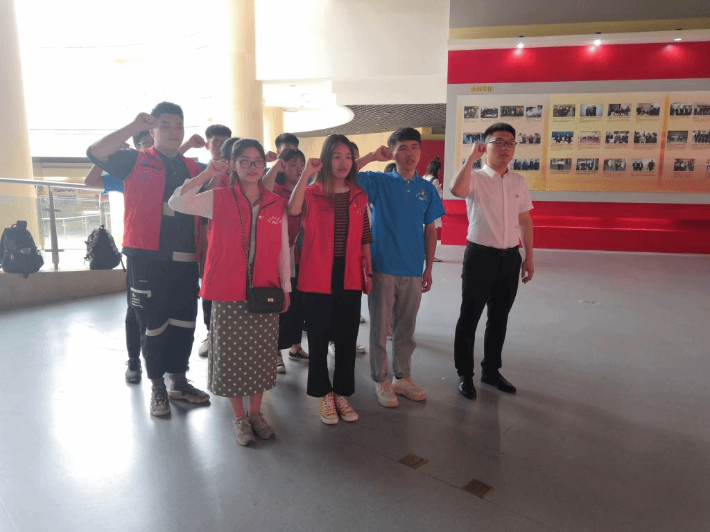 车刚抵达,同学们就迫不及待地进入史来贺纪念馆参观学习。原老师首先向大家介绍史来贺同志的光辉事迹,提到史来贺同志带领刘庄人用了50多年时间把一个“方圆十里乡,最穷数刘庄”的贫困村治理成了“既富裕又幸福”的享誉全国的富裕村。他又指出,史来贺同志一辈子为党的事业奋斗不懈怠、一辈子践行党的宗旨不褪色的精神深入人心,值得每位青年党员学习。同学们又通过一张张照片、一段段文字的学习参观,更加深切的感受史来贺同志的坚定信念、实事求是、无私奉献、艰苦奋斗的工作态度和作风,感染着到场的每个人。随后在党旗下,原老师带领同学们进行庄严宣誓,纷纷表示要进一步学习史来贺精神,坚定理想信念,增强责任意识,时刻为群众着想,敢于先锋,敢于担当,争做新时代优秀的青年共产党员。