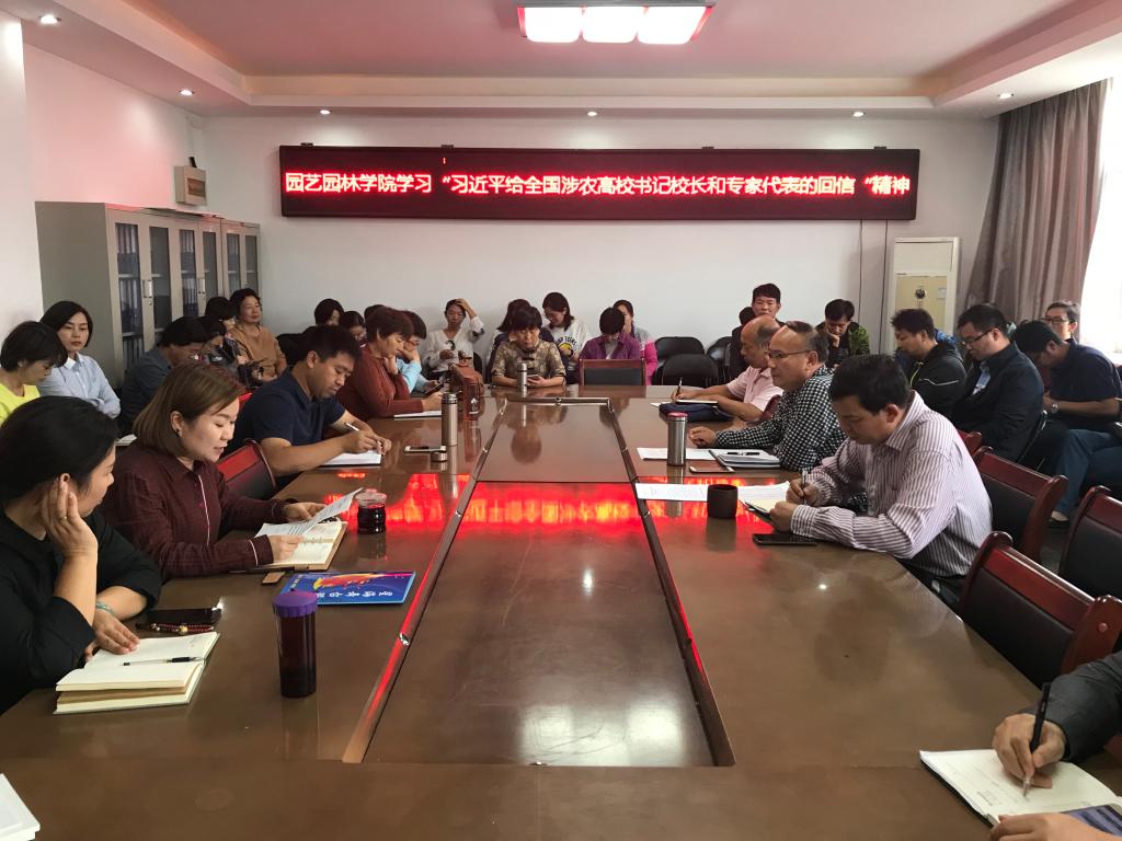 9月12日下午,园艺园林学院党委在实验楼B316会议室召开学习“习近平给全国涉农高校书记校长和专家代表的回信”精神座谈会。学院党政领导、全体教师参加了会议。会议由院党委书记郜庆炉主持。
